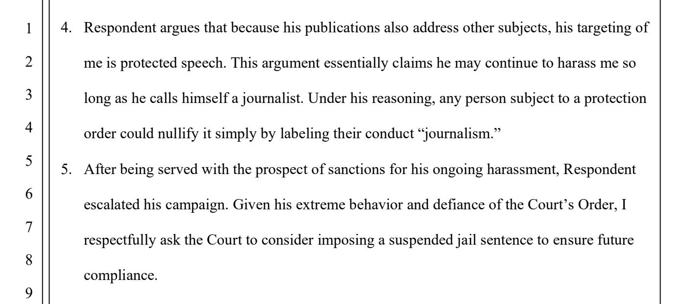 As the complaint details, Mavy’s filing was a “transparent attempt to weaponize the Clallam County Superior Court, seeking to classify [my] rigorous, First Amendment-protected investigative reporting on Mavy’s criminal conduct as actionable ‘harassment.’”