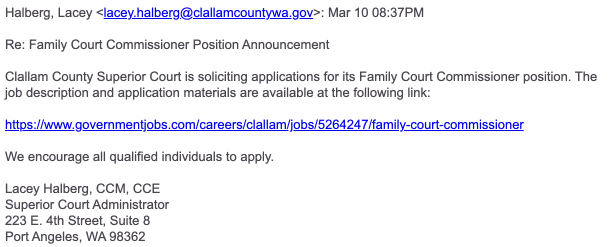 Clallam County Seeks New Family Court Commissioner in Wake of Parker Scandal