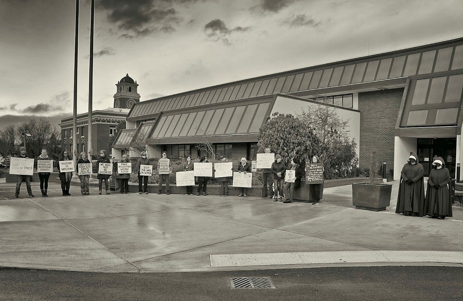 On January 29, community members gathered in front of the Clallam County Courthouse to express their outrage regarding Judge Basden, Commissioner Parker, and what is perceived as a “good ol’ boy” justice system.