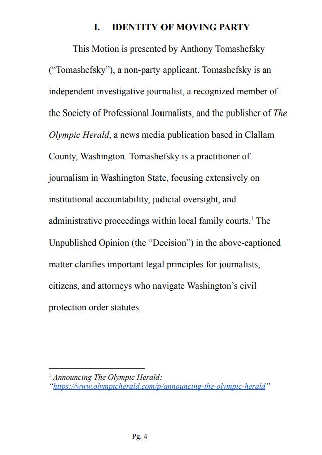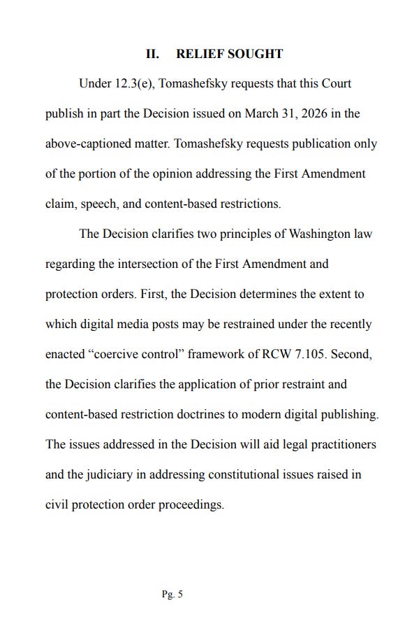 The Olympic Herald has formally petitioned the Washington State Court of Appeals to publish a portion of a recent ruling that struck down an unconstitutional gag order in a Thurston County domestic violence case.
