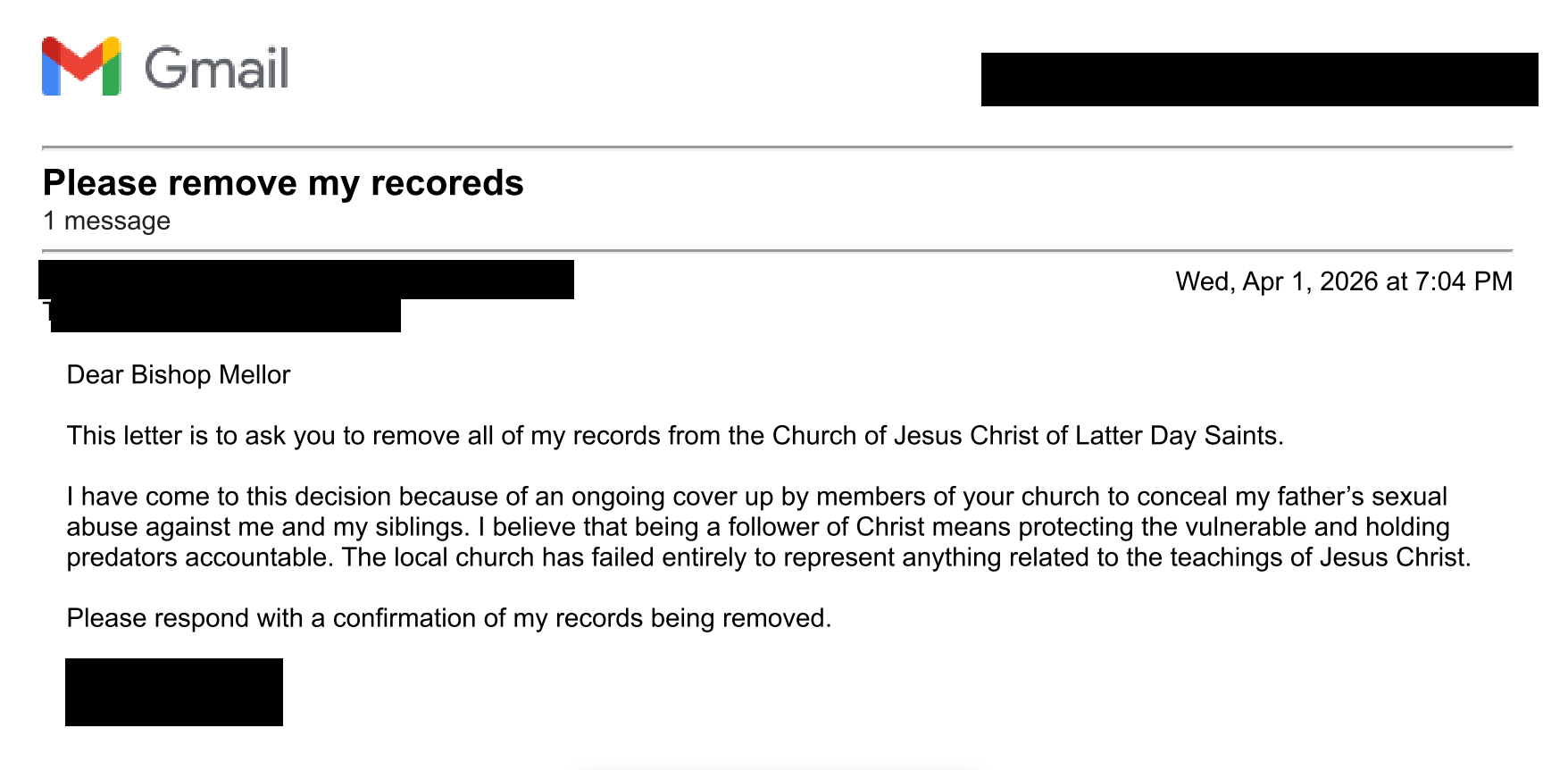 The letter, penned by a survivor, formally demanded the removal of their church records. But the underlying abuse—and the ecclesiastical efforts to hide it—did not happen in Pullman. The allegations originated hundreds of miles away in the Port Angeles Washington Stake.
