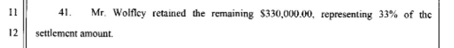 When Pritchard refused to sign the new agreement, the lawsuit alleges Wolfley unilaterally retained the higher amount—approximately $330,000—rather than the agreed-upon 18%.