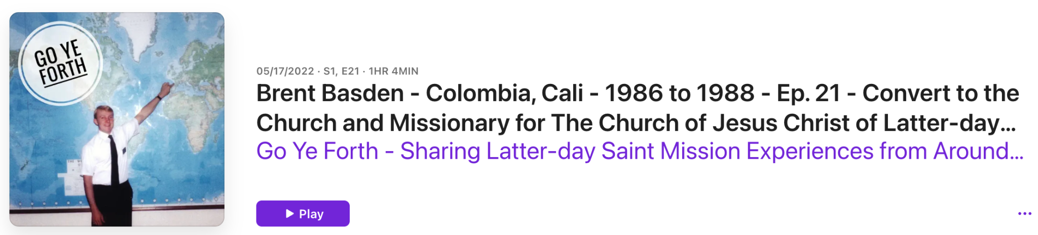 Basden further discusses his close personal relationship with Kiddle, in an hour long podcast, “Go Ye Forth - Sharing Latter-day Saint Mission Experiences from Around the Globe.”