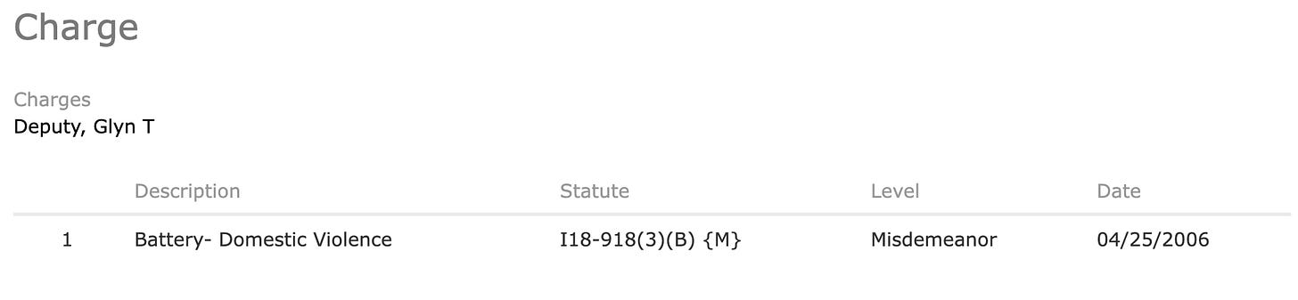 Court records from Idaho show that Deputy was charged with domestic violence related crimes, yet Deputy appears to perform domestic violence evaluations and work with victims.
