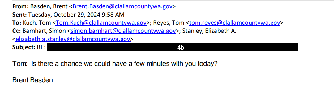 These same emails appear to have been forwarded by Kuch to Basden, and are redacted in the county provided records